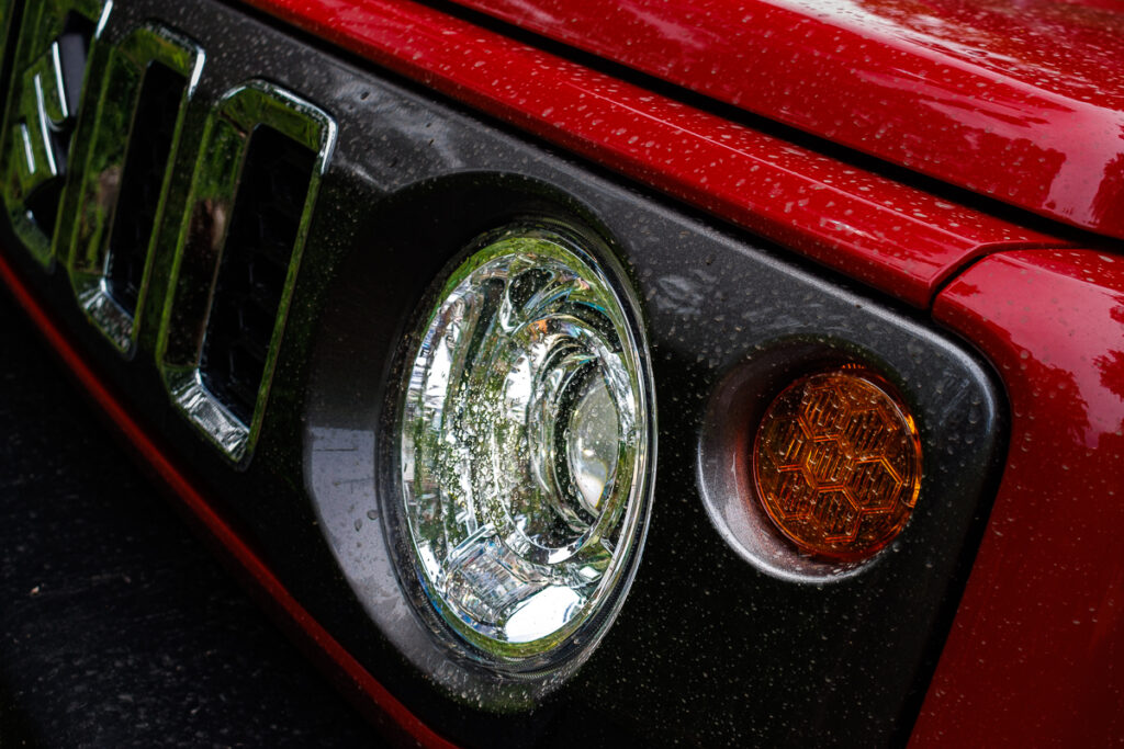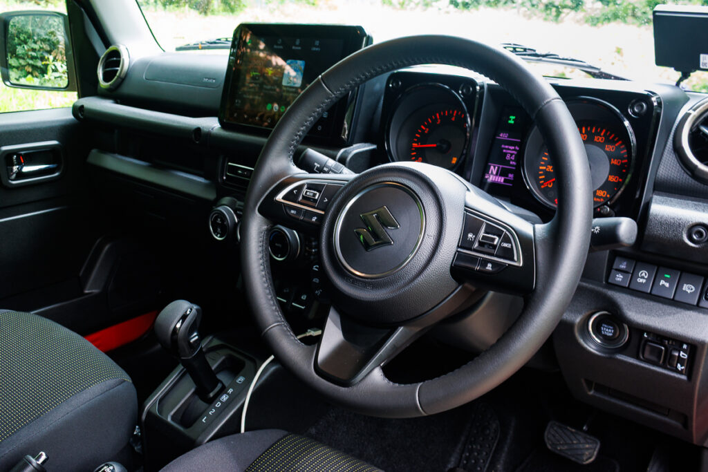 At speeds, the Jimnyโs vocal engine, coupled with the wind noise from the upright windscreen and large wing mirrors do notably intrude a little into the cabin. Overall, things feel civilised enough for you to enjoy the drive. However, downshifting two gears while overtaking does create quite the din, and I note that the gearbox at times hesitates to upshift.