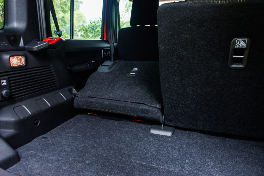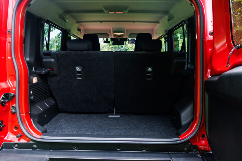 Alongside the added rear leg space, the boot has jumped from 85 litres for the 3-door, to 221 litres for the 5-door. This would mean that you can quite easily do a proper grocery run without the need to fold the back row of seats, unlike the 3-door. Speaking of the rear seats, the 5-door Jimny can offer up to 1,100 litres of cargo space.