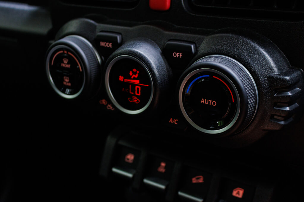 The air-conditioning control module comes in the form of three neat rings, where the two outer rings feature straightforward rotary dials to toggle the fan speed and thermostat. I like the Jimnyโs functions are, for a lack of a better word, โtraditionalโ.