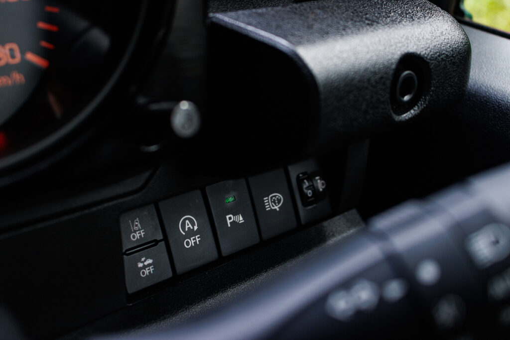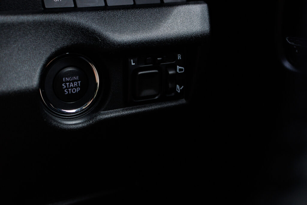 The Jimnyโs interior is a simple affair. Materials here feel hardwearing and easy to clean. I like that the electric window switches for the front door cards are located on the dash; which would mean that you need not worry about its electronics getting soaked, especially when the door is left open in the rain (where you might just need to go out of the car to get it unstuck).