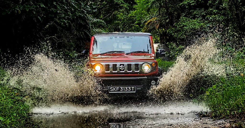 While most would almost never get the chance to put the Jimnyโs off-roading prowess to the test in Singapore, I did find a little slippery-n-yuck space to experience the confidence of the SUVโs 4WD; and it didnโt at all disappoint. The Jimnyโs suspension also had sufficient articulation to get the wheels over a few obstacles.