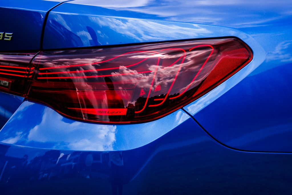 While not very extensive, the LCI work that BMW have done on the i4 is still noticeable. This includes new LED headlights, which boast a new lighting signature, and laser tail lights (identifiable by their warning label) – the latter which were first seen on the M4 CSL. The controversial grille has been given a few tweaks to modernise it, while the signature EV blue trim which has not aged well design-wise, has largely been wiped out.