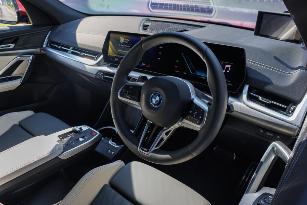 The interior brings with it a little bit of… and all of the iX1. The iX2 also shares its fascia componentry with the 2 Series Active Tourer. After all, the three body shapes can be further boxed into a close family of their taller premium cars.