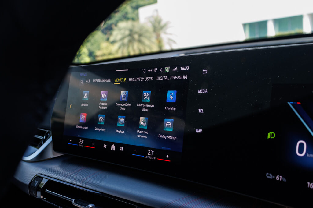 Sharing a single panel with the digital instrument cluster, the 10.7-inch infotainment screen, powered by BMW’s newest Operating System 9, runs smoothly, and offers voice assistance, which is arguably the best-in-class. Wireless charging is offered via an upright pad, located at the base of the centre console. While the pad does look quite large, it is only designed to charge one mobile device at a time.