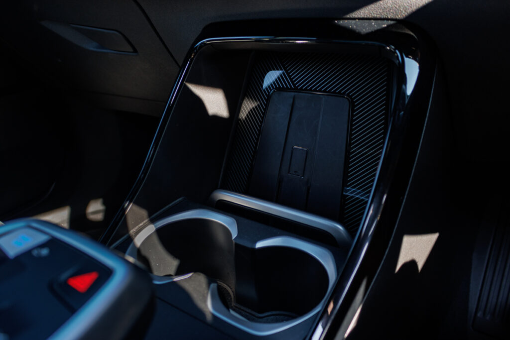 Like in its sister car, the floating console, which houses the drive selector tab, takes inspiration from the larger BMW iX. If you are rather sharp, you might just spot a bit of a cost-cut here, as the lid for the container/armrest opens toward the right, which means the more lucrative left-hand drive markets are prioritised here.
