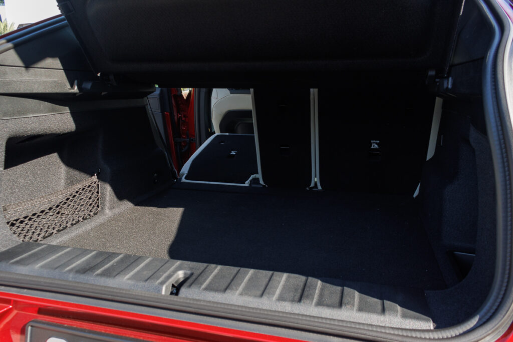 A wider-more pronounced grille, makes for an angrier demeanour. While at the rear, the sporty theme continues, with tail lights mounted at the top of the boot lid, which provide a sense of girth – further emphasised by the tucked-in C-pillar.