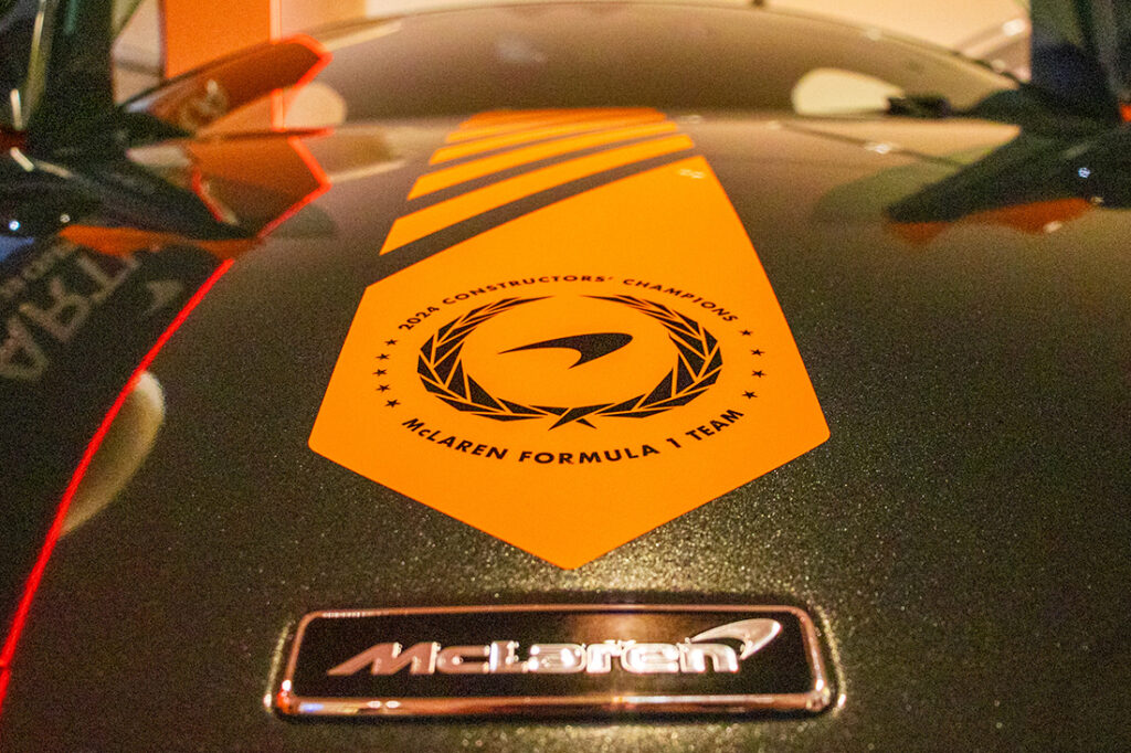 These special touches don’t stop on the inside. Each car will contain the McLaren Champions’ Laurel on the two headrests. The carbon fibre extended sill cover will also be signed by McLaren’s stella pair of racing drivers, Lando Norris and Oscar Piastri, who clinched six wins between themselves out of the twenty-four Formula One races in 2024.
