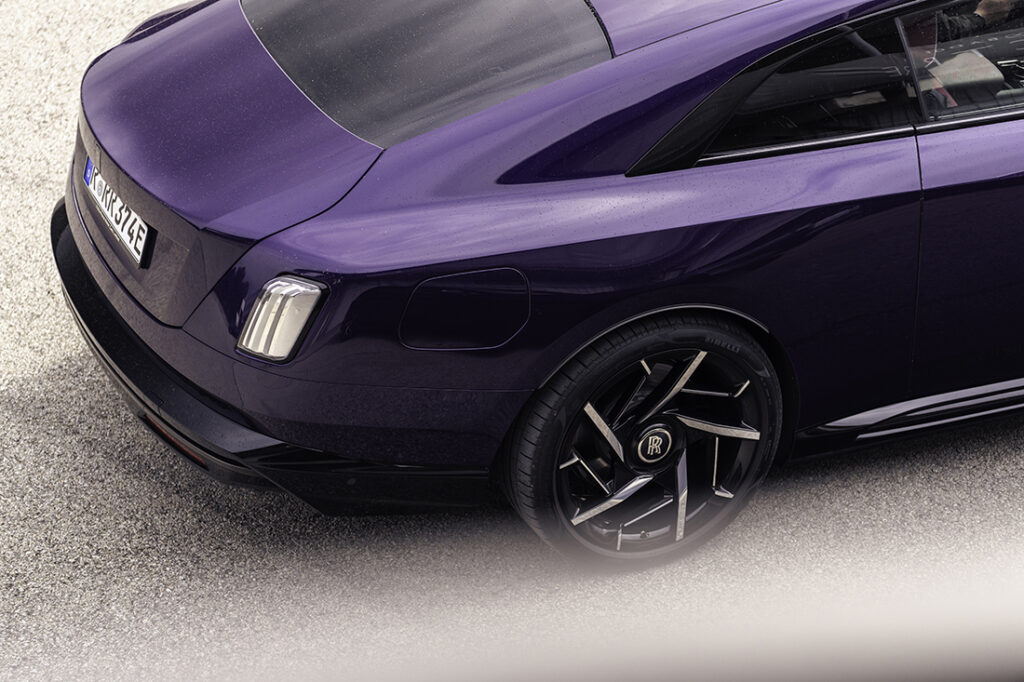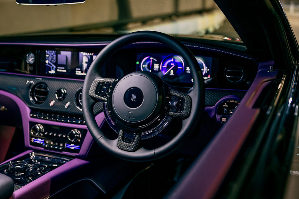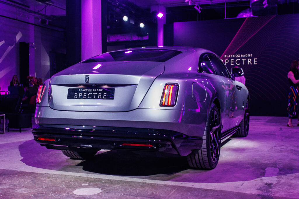 Out of the 44,000 ‘prêt-à-porter’ colours owners can choose from, the Black Badge Spectre’s launch spec in Goodwood was finished in a premium colour named Vapour Violet, and also comes with a painted Iced Black bonnet that creates an elegant two-tone contrast with the body colour. For the first time, owners can also commission a ‘waft’ coachline, making the design of the car’s lower third section more prominent and its wide dimensions more emphasised.