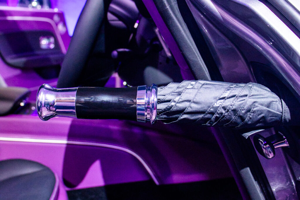 And of course, with every Rolls-Royce, the Spectre Black Badge comes with its very own elaborate umbrella, complete with an umbrella holder seamlessly integrated into the body.