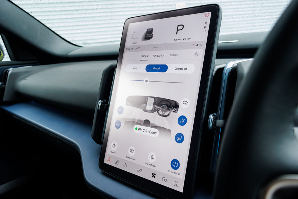 The upright infotainment touchscreen, which is powered by a Qualcomm Snapdragon chipset, makes for quick and smooth navigation. Both Apple CarPlay and Android Auto are supported wirelessly. If you are familiar with how Teslas function, youโd not be a stranger here, as the driver display is also integrated into the infotainment screen. This means that the speed readings are located on the top right of the screen (which is not the most ideal space to check your speed). The touchscreen is also used for controlling the air-conditioning, adjusting your wing mirrors, and even opening the centralised glove box. In my books, Volvo should have kept things simple, as all this fuss proves to be rather frustrating.