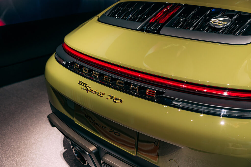 Those with a keen eye for detail will also notice that the Spirit 70 does not contain the current Porsche crest, but rather the historic logo from 1963. Gold-coloured “Porsche Exclusive Manufaktur” badges can also be found on either side, and the Porsche Heritage badge on the boot lid lets others know that you’re not driving a “garden-variety” Porsche.