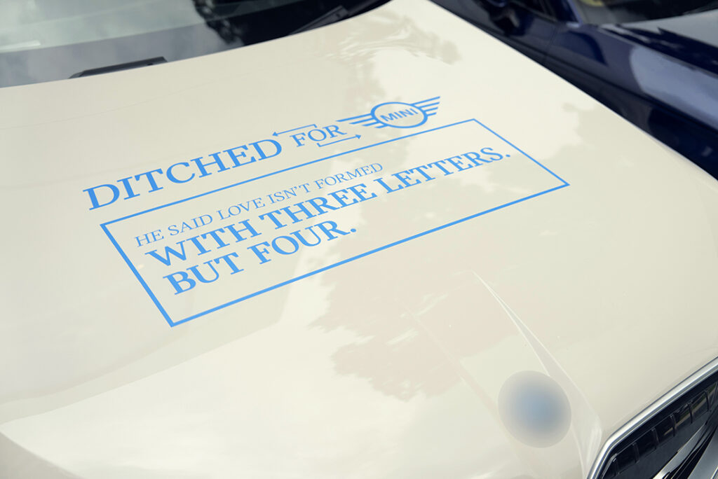 From now till 30 September 2025, you might just stumble across a witty breakup line, plastered on the bonnet of a competing car, out in public. Participating customers of MINI who have agreed to be part of the brand’s new and bold marketing effort, will be driving their existing cars till they are swapped for the MINI they purchased.
