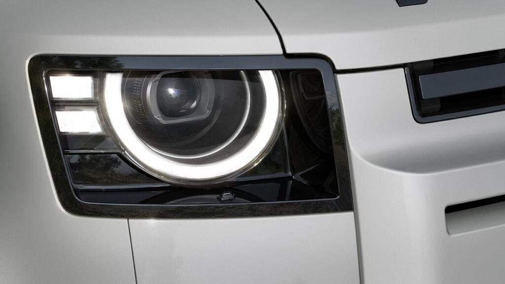 So what is new then? The new Defender receives revised headlights, along with a new Daytime Running Light signature. Along the bonnet treadplates, grille inserts and on the fender, there is a new squircle motif. And at the rear, the Defenderโs tail lights are now flush with the bodywork; which the product guys at the unveiling were keen to point out, was less susceptible to picking up mud.